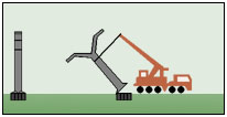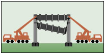 Конструкцией основания является буронабивная свая с напрягаемым арматурным каркасом. Путевые колонны опираются на свайные фундаменты и закрепляются амортизирующими креплениями за анкерные болты. Конструкции путей монтируются двумя кранами прямо с колес. Путевые балки закрепляются под консолями путевых колонн. На месте осуществляется монтаж металлоконструкций, произведенных на заводах и доставленных к месту строительства, что позволяет производить работы, не перекрывая улиц для движения и не нарушая близлежащие ландшафты.