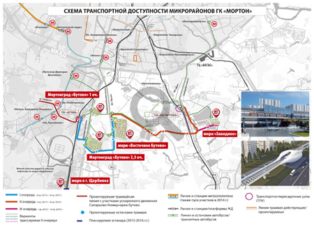 К 2019 году скоростной трамвай пройдет от Бутово до г.Видное, соединив Мортонград «Бутово», микрорайоны «Восточное Бутово» и «Завидное», а первая очередь строительства будет завершена уже в 2017 году. Благодаря этому удобному скоростному транспорту жители строящихся и уже заселенных микрорайонов компании беспробочно, гарантированно вовремя смогут добраться до ТПУ «Бутово», пересесть на электричку и за 15 минут добраться до ближайшей станции метро «Царицыно», или за 40 минут – до станции метро «Курская». Либо доехать до ТПУ «Расторгуево», а затем за 30 минут – до станции метро «Павелецкая».