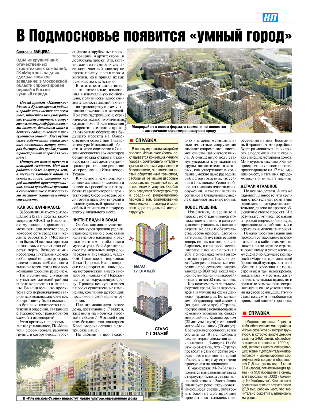 Новый грандиозный проект ГК «Мортон» с момента его анонсирования и по сегодняшний день значится в списке наиболее обсуждаемых тем. Не обошла вниманием «Ильинское-Усово» и «Комсомольская Правда», одно из самое популярное и авторитетных изданий российской центральной прессы. О том, какие изменения претерпел проект ведущего столичного застройщика, и в каком виде он увидит свет – в новой статье «Комсомольской правды».