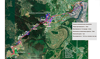 На маршруте «Стрелы» от ст.м «Мякинино» до мкрн. «Ильинское-Усово» предусмотрено 13 остановок, которые будут расположены рядом с основными жилыми, офисными и торгово-развлекательными объектами Красногорского района. Стоимость проезда составит 45 рублей. Строительство «Стрелы» будет проходить в 2 очереди. Строительство первой очереди «Стрелы» от Мортонграда «Ильинское-Усово» до платформы «Красногорская» протяженностью 8,3 км будет завершено в 2019 году. Вторая очередь будет построена и открыта в 2020 году.