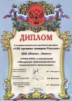 Диплом Х межрегиональной выставки-ярмарки «100 лучших товаров России». «ГРАН-ПРИ» в номинации «Продукция производственно-технического назначения».